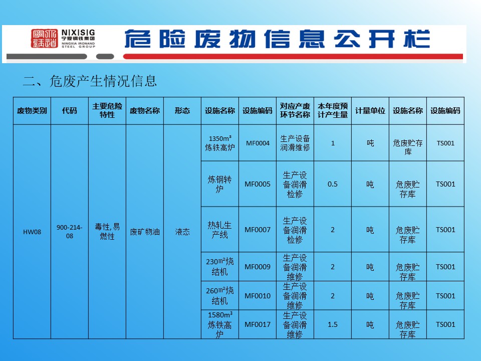 寧夏鋼鐵危險(xiǎn)廢物信息公開